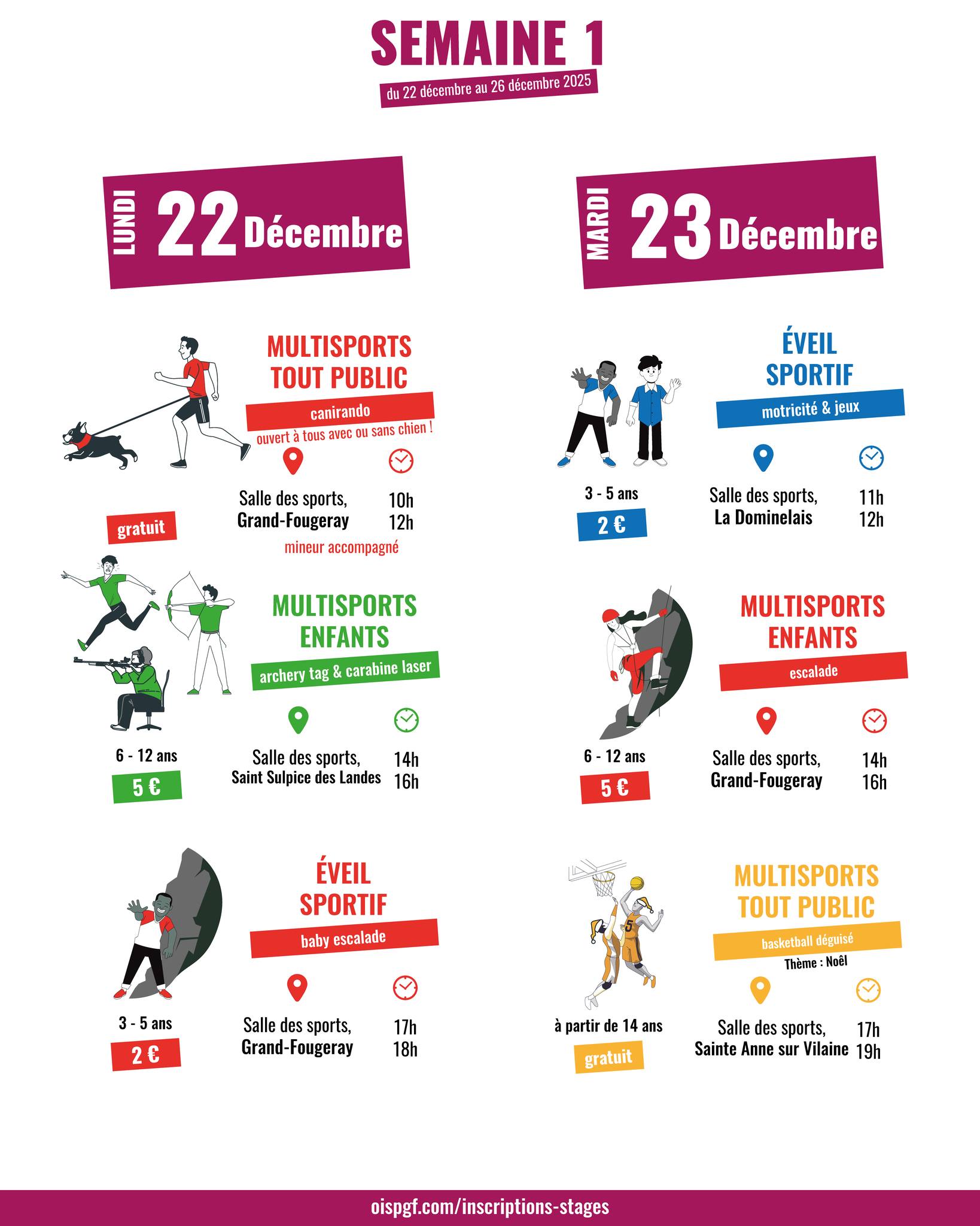 Durant les vacances de Noël, les Offices du Sport multiplient les rendez‑vous sportifs pour les enfants, les jeunes, les adultes et les seniors : ateliers découverte, stages multisports, initiations et pratiques ludiques en famille.
