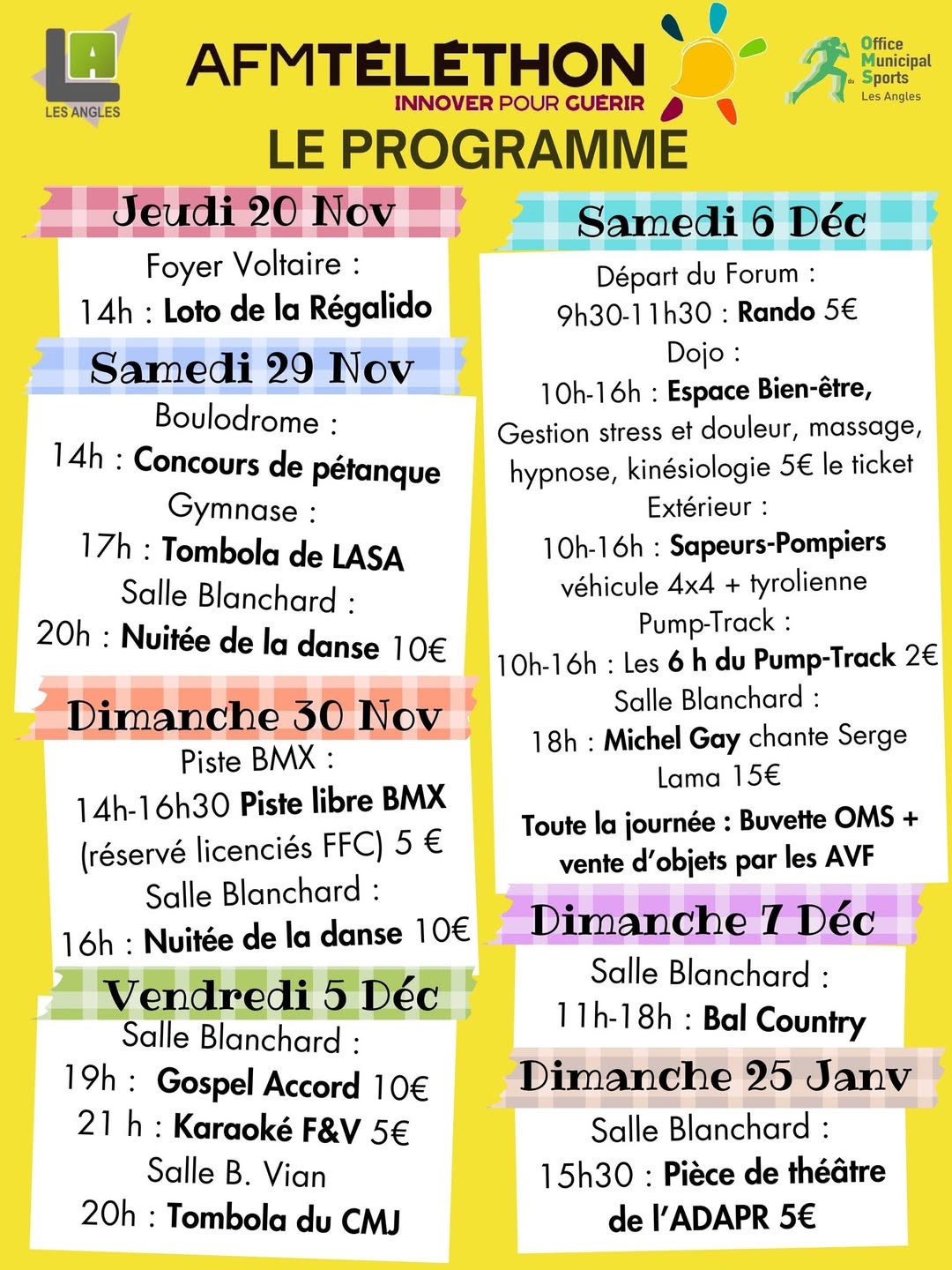 Comme chaque annĂ©e, les Offices du Sport sâengagent pleinement aux cĂŽtĂ©s du TĂ©lĂ©thon pour soutenir la recherche et accompagner les familles.