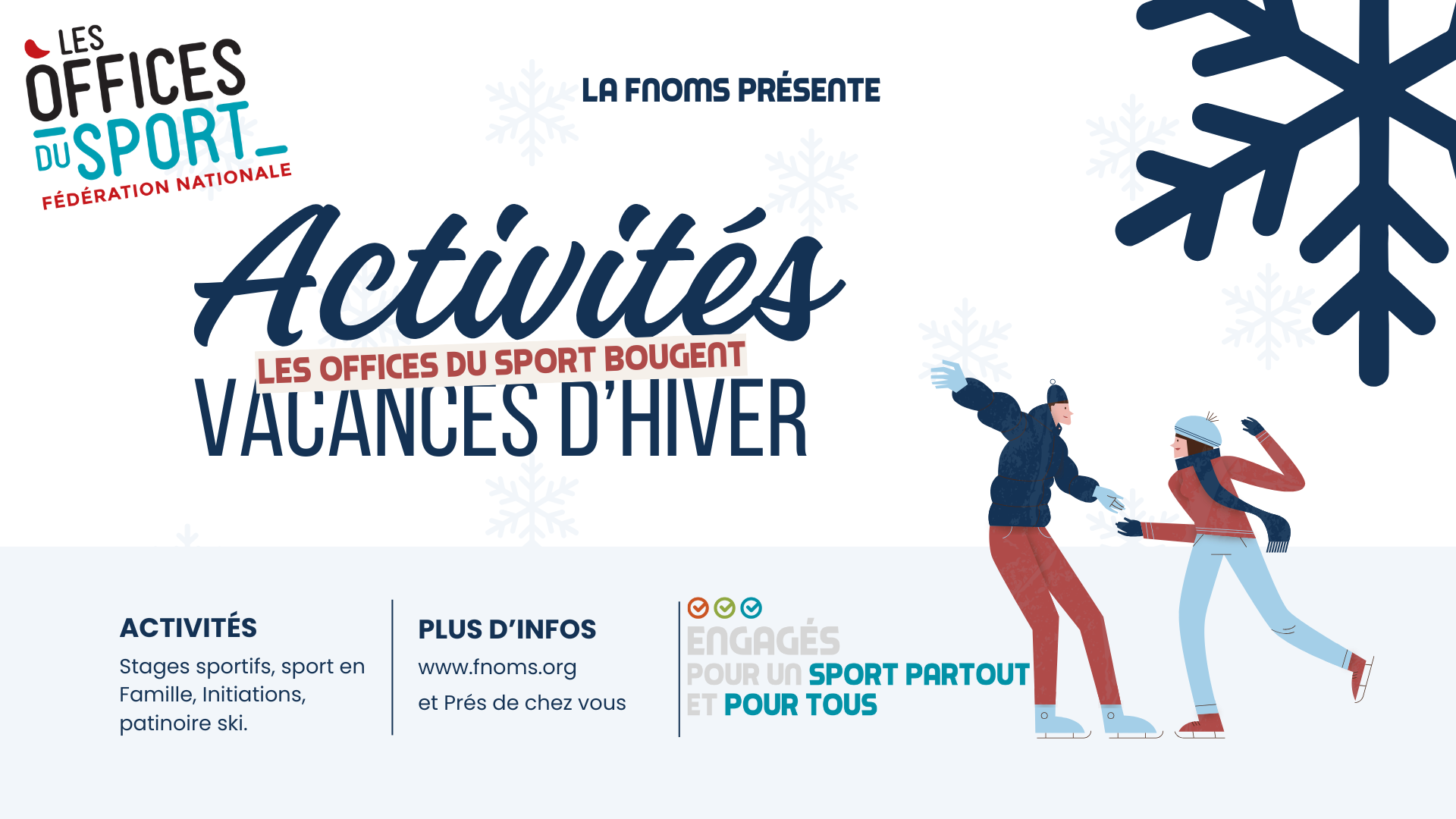 La FNOMS lance une nouvelle dynamique pour les vacances d’hiver : partout en France, les Offices du Sport organisent des activités sportives pour les familles, les jeunes et les publics éloignés de la pratique.